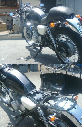 この色はこの色で、タンクとのバランスも良いし、かっちょいいですよ。