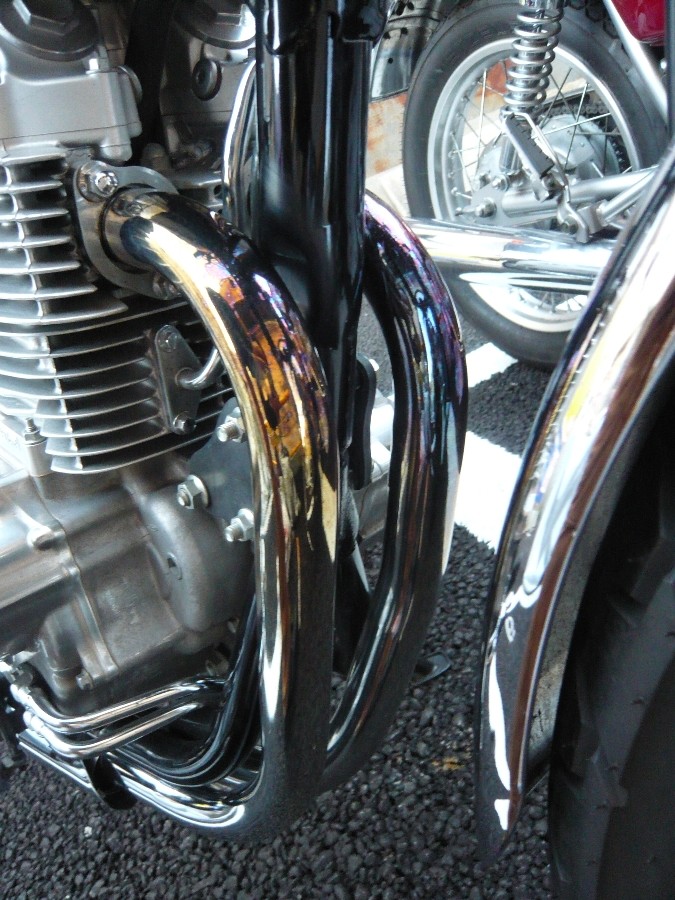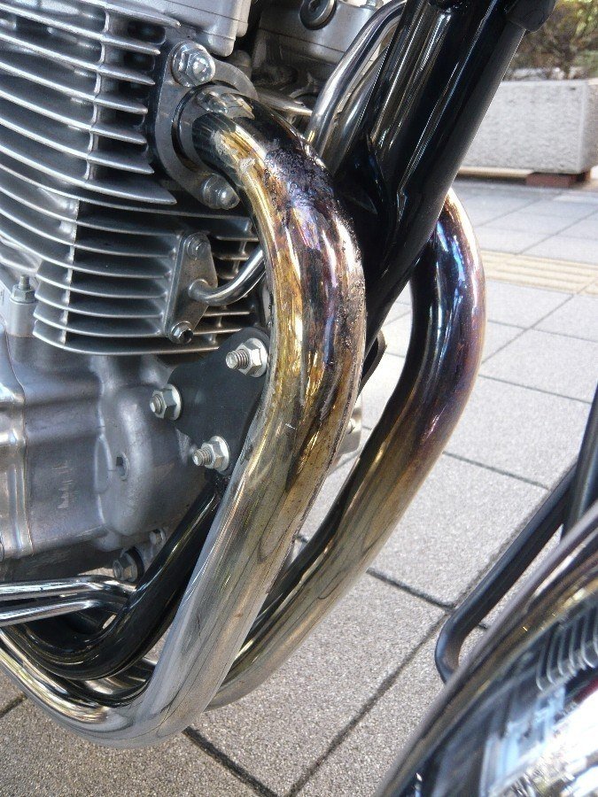 CB400SSの純正エキゾーストはさすが純正クオリティ、厚めのメッキがされてるように感じます。