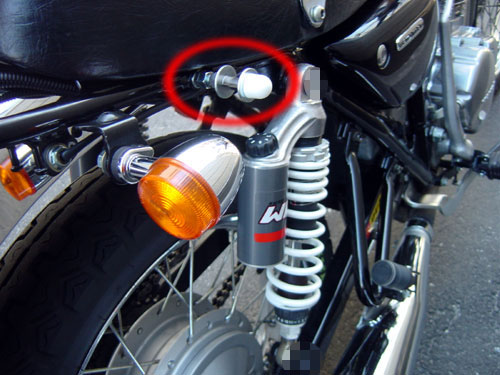 あと、一番心配なのが「盗難」なんですが、盗難防止用のボルトを使うことで一応の対策。 完全な防御にはなり得ませんが、少しは効果あるはずです。 ちょっとは安心になったんですが、この盗難防止用ボルトの使用によって、 リアサス上穴の固定に使用しているボルトと一体になっていた荷掛けフックステー(?)が なくなってしまいました。