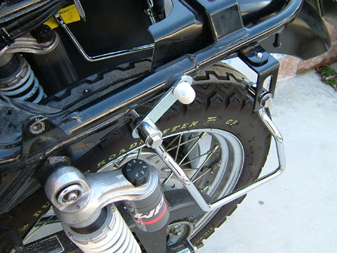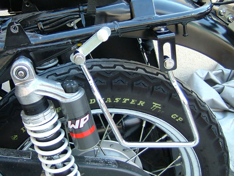 サポートのステーはこんな感じ。 ボルト山が直接サイドバッグの皮に当たるところには、 念のため白いプラスチックのカバーをかぶせておきました。